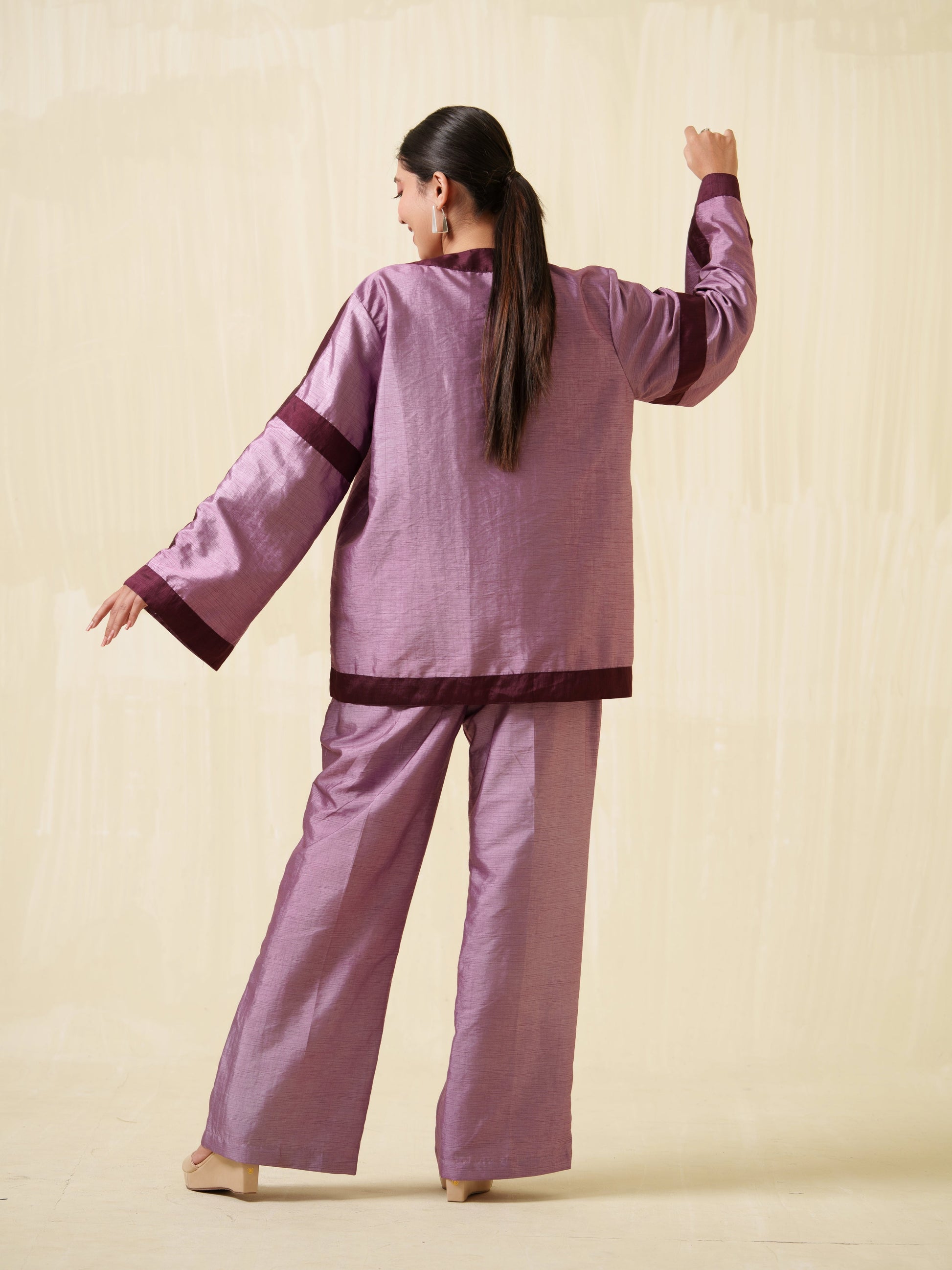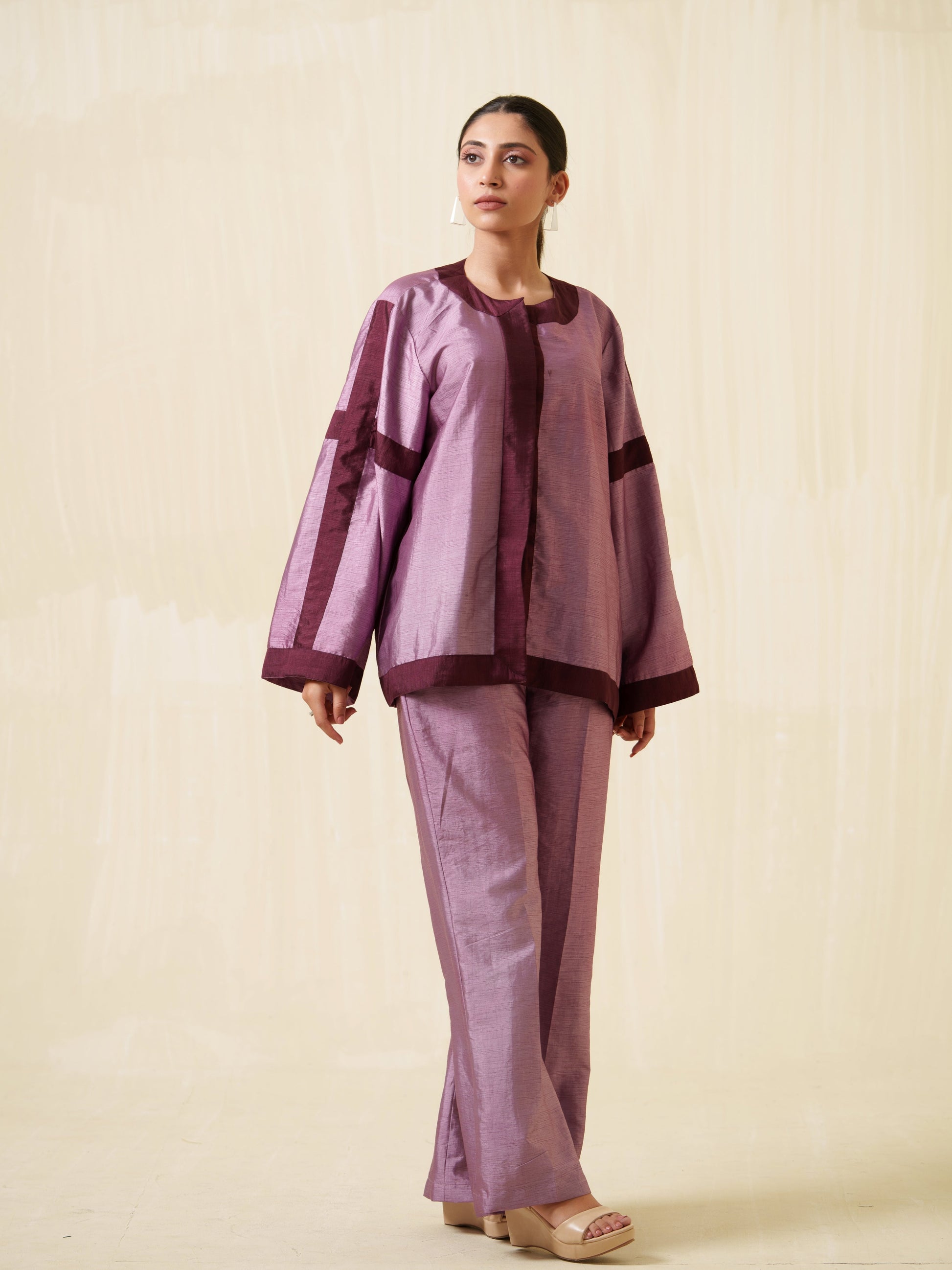 This color-blocking co-ord set is a dynamic masterpiece, harmonizing contrasting shades for a fashion-forward statement that's both chic and edgy. Elevate your style effortlessly with this vibrant ensemble.