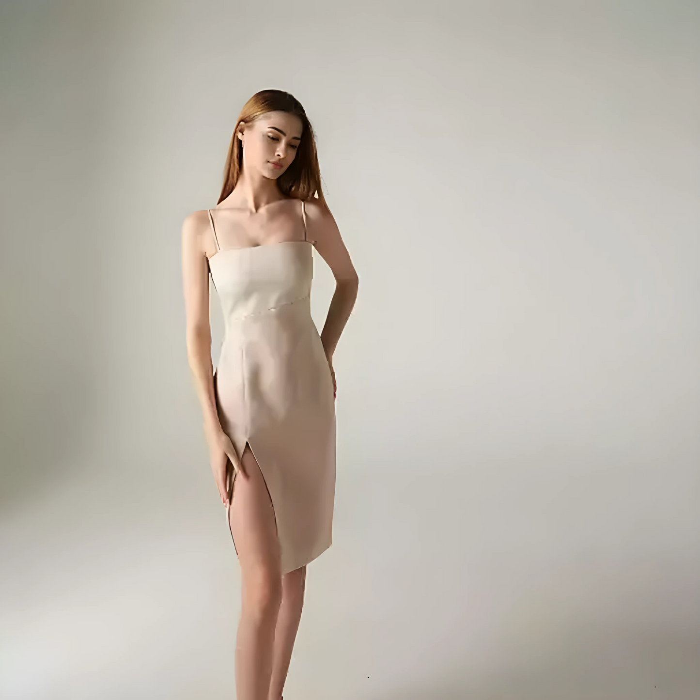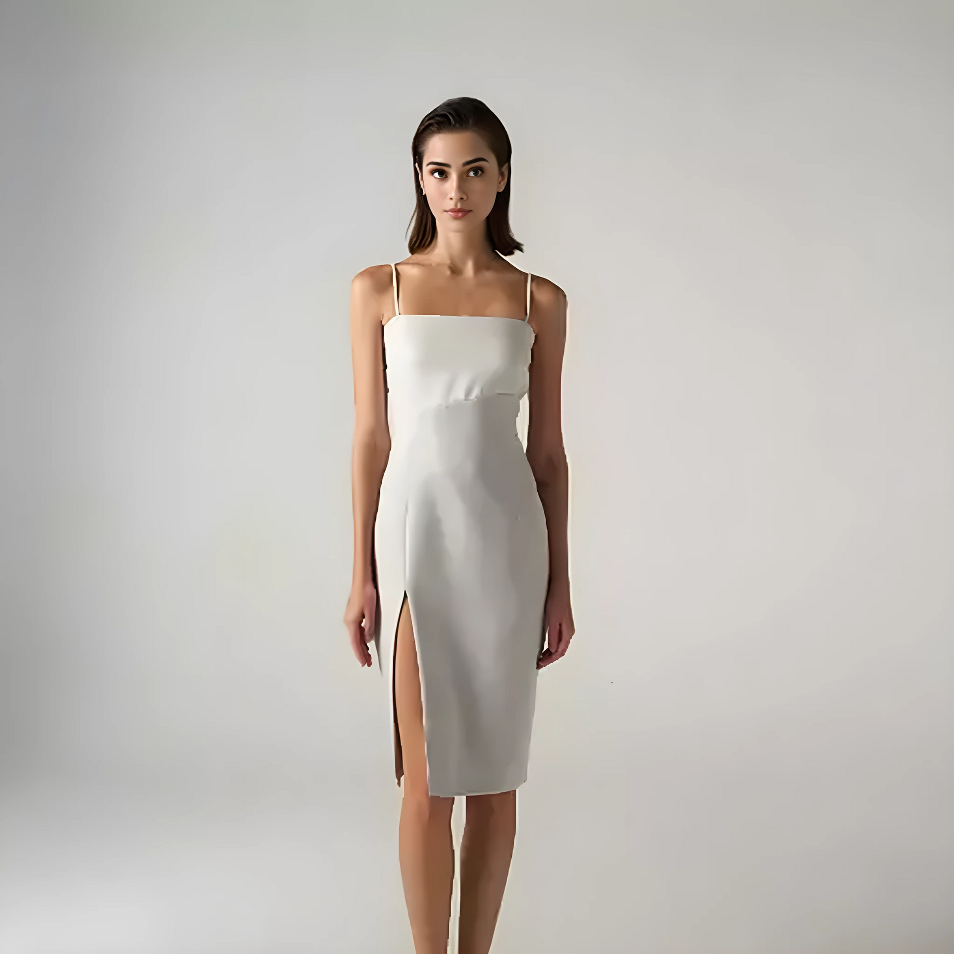 A striking dress with a unique half-and-half color scheme,This eye-catching design adds an element of intrigue and modern flair to any occasion.